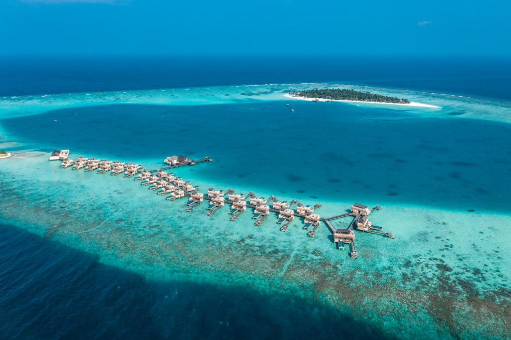 The two-storey, two-bedroom residence is an oasis of luxury for the family, with a prime ocean address surrounded by vibrant marine life and with direct access to the coral reef. Jump into an infinity pool stretched right above the clear ocean waters, take a nap in an ocean-suspended hammock, or suntan on a wooden poolside deck.