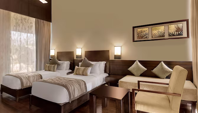 Experience the enchanting Namah Resort Jim Corbett, an exclusive member of Radisson Individuals, where you can choose from a selection of 48 modern rooms and suites designed to bring the natural beauty of the surrounding landscape indoors. Relax and unwind in the comfort of your room, complete with picturesque balcony views and luxurious amenities such as plush bathrobes and slippers.